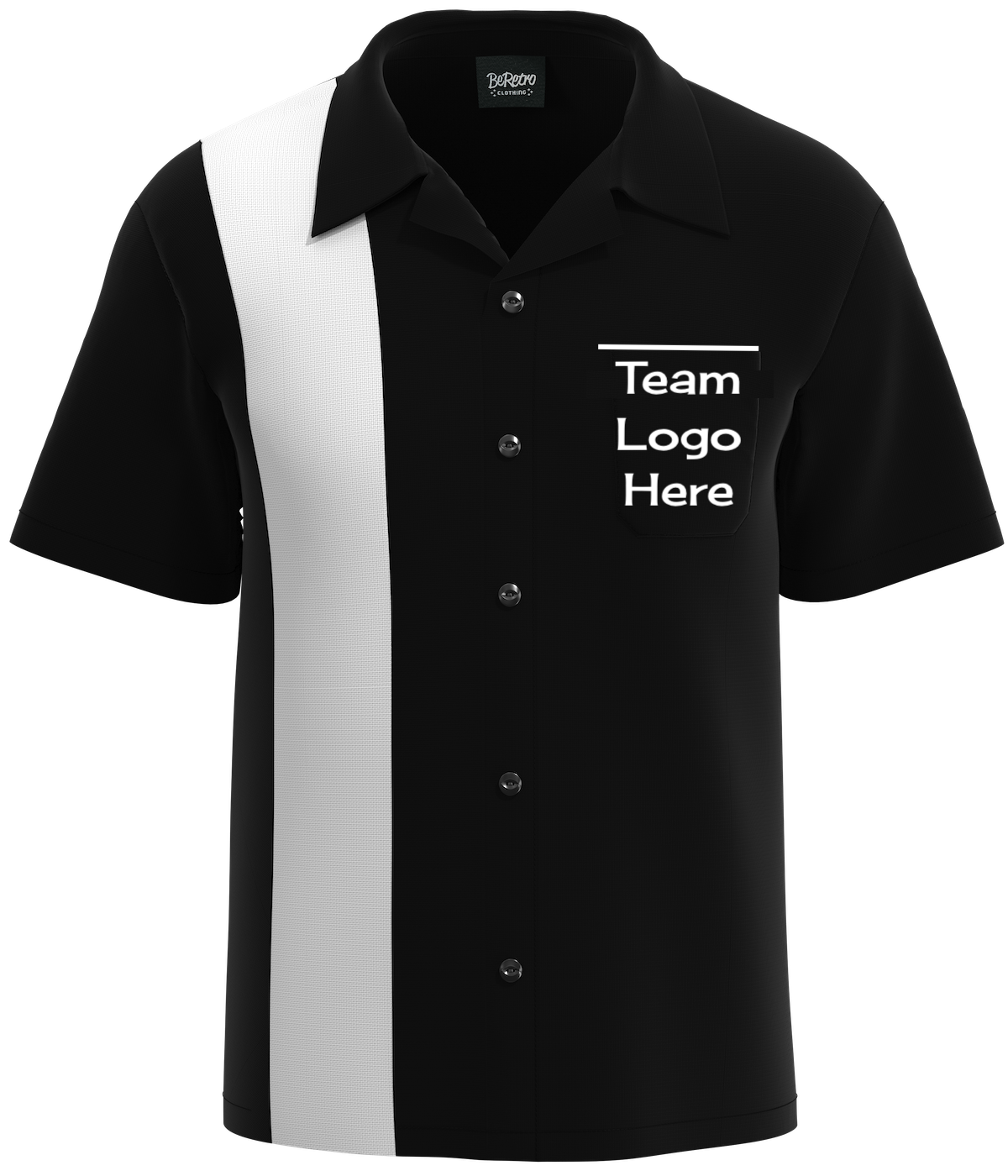 • Retro Bowling Shirt with White Racing Stripe and Custom Team Logo Pocket Print