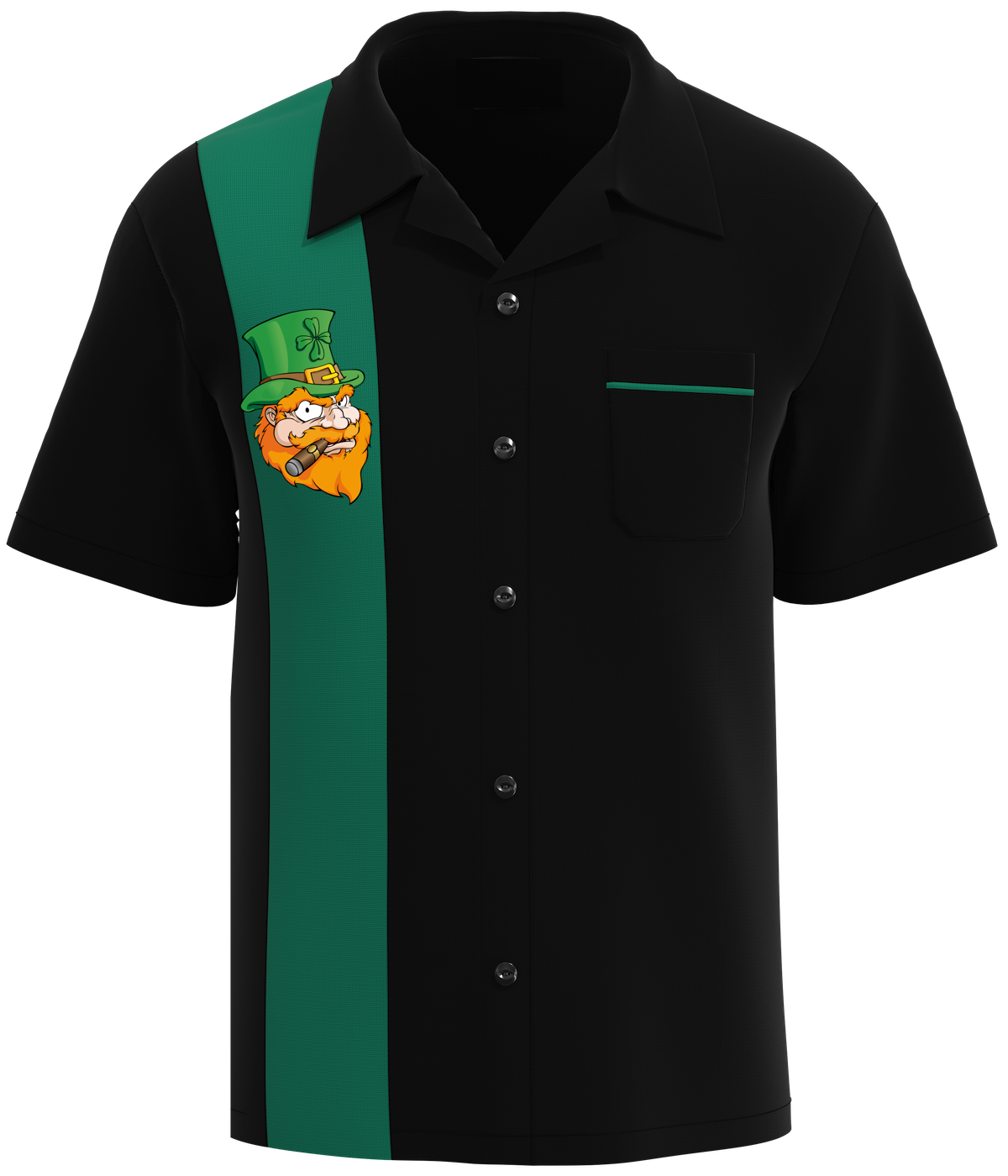 Step onto the lanes with an edge. Part of our Lucky Bowling Shirts collection, "The Leprechaun" features a high-impact printed graphic of a cigar-chomping leprechaun with serious attitude.